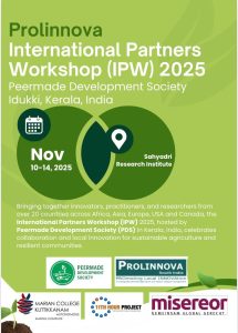 The International Partners Workshop (IPW), Prolinnova 2025 is scheduled to be held from 10 to 14 November 2025 at the Peermade Development Society.